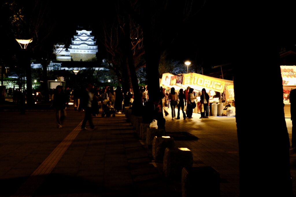 残念ながら今日の日中は足を運ぶことができず、日の落ちる時間に足を運んできました。 大手前公園の屋台が綺麗に見えて撮影してきました。 今日で桜も見納めでなのでしょうか?人の多さに驚きました。 ブルーアワーの姫路城も綺麗に撮影できました。 -