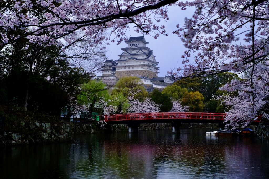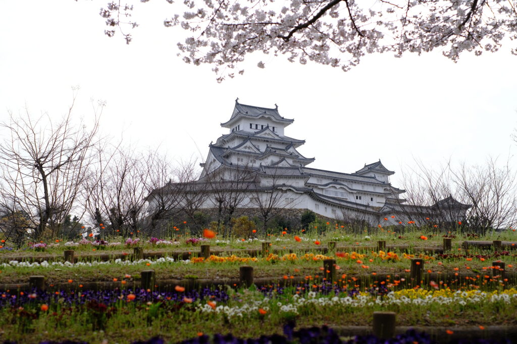 今日の姫路城です。 今日は赤い橋の画角から撮影してきました。 小雨の中の撮影なんですが水面がボケていい感じになりました。 晴れも撮影したいです。 東側の姫山駐車場からも撮影してきました。桜のアーチが綺麗です。 -