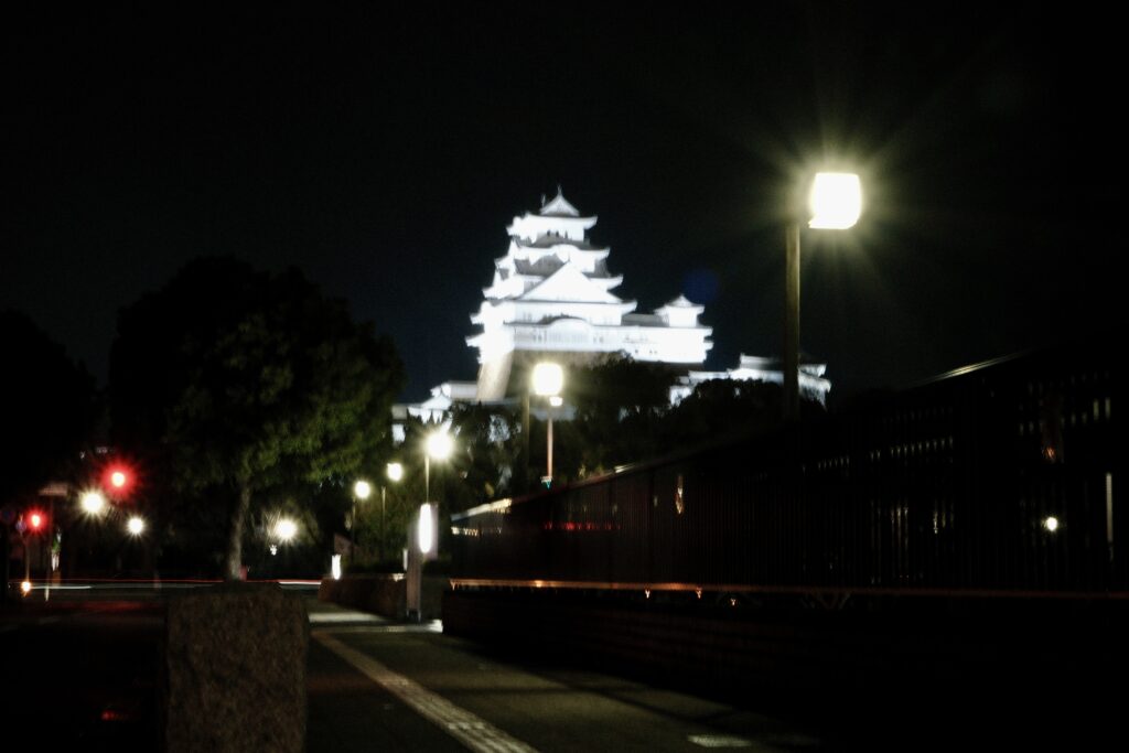今日の姫路城ですスポットライトみたいになってるスポットを発見しました。